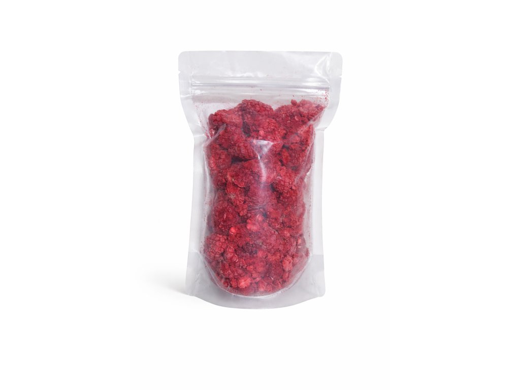 Lyofilizace (sušení mrazem) je nejšetrnější metoda konzervace ovoce. Probíhá při velmi nízkých teplotách, kdy se voda z ovoce odstraňuje sublimací, nikoli teplem. Díky tomu si maliny zachovávají svou přirozenou chuť, barvu, vůni i strukturu, bez nutnosti přidávání cukru, konzervantů nebo jiných látek. Výsledkem je lehké, křehké a krásně křupavé ovoce s intenzivní malinovou chutí.